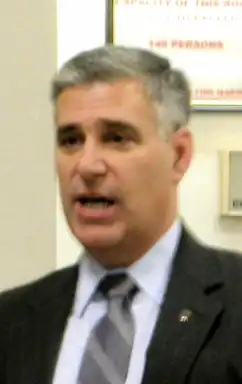 John J. Loughlin II (born March 3, 1959) is an American politician was a Republican member of the Rhode Island House of Representatives, representing the 71st District from 2005 to 2010. During the 2009-2010 sessions he served on the House Committees on Labor and Veterans Affairs, and he also served as minority whip.[3] In June, 2010 he announced that he would not run for another term and that he would be running for U.S. Congress in the First Congressional seat being vacated by Patrick J. Kennedy. He lost in the 2010 General elections to outgoing Providence Mayor David Cicilline.[4]