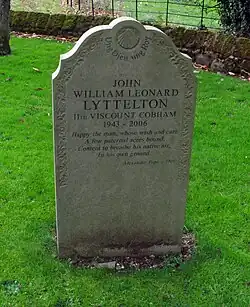 - ^ Roth, Andrew (22 July 2006). "Viscount Cobham - 'Cricketing Lyttelton' whose wife ran off with David Mellor". The Guardian. Retrieved 14 November 2021.