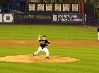 In January, the Mets avoided arbitration, signing Maine to a one-year, $2.6 million contract.[7] Maine initially struggled coming off the shoulder surgery, posting a 5.40 ERA to go with a 1–2 record in four April starts. However, he bounced back in his six starts in May, going 4–1 with an ERA of 2.75, nearly half of his April ERA. After a poor start in June, he was placed on the 15-day disabled list due to arm fatigue.[8] Maine would stay on the DL with arm fatigue and numerous setbacks for a long amount of time. He eventually came back in mid-September and was eased back into the rotation, going more than 5 innings only once. In his last start of the season against the Astros, he went 7.0 innings letting up one earned run with 7 strikeouts, with that encouraging start he gave the Mets more certainty that he can return to his '07 form in the 2010 season.[9] He finished the 2009 season with a 7–6 win–loss record throwing 81.1 innings with an era of 4.43.