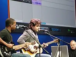 As early as 2002, Chris Willman with Entertainment Weekly said that Mayer was "more historically savvy, and more ambitious than you'd guess from the unforced earnestness of [Room for] Squares".[51] However, Mayer was largely associated with the Adult Contemporary and singer-songwriter genres.[51] Fame allowed him access to his early influences, and he began collaborating with blues and jazz artists. He accompanied Buddy Guy in a concert at the Irving Plaza in December 2003.[52] He toured with jazz pianist Herbie Hancock, including a show at the Bonnaroo Music Festival.[53] He also performed on commercial releases, namely, with Eric Clapton (Back Home, Crossroads Guitar Festival), Buddy Guy (Bring 'Em In), John Scofield (That's What I Say), and B.B. King (80). Although Mayer maintained his reputation as a singer-songwriter, he gained distinction as a guitarist.