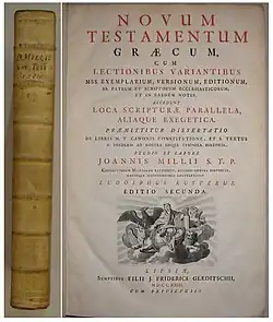 John Mill (c. 1645 – 23 June 1707) was an English theologian[1] noted for his critical edition of the Greek New Testament which included notes on over thirty-thousand variant readings in the manuscripts of the New Testament.[2]