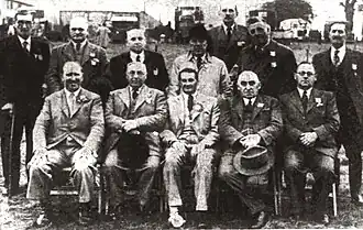 Morgan (front-row, centre) at a Bedwellty Agricultural Society show, 1950.[40]