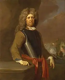 He achieved post rank on 14 December 1688, when Lord Dartmouth gave him command of the Edgar. At the battle of Beachy Head he commanded the Coronation.[4] He fought at the battle of Barfleur on 19 May 1692, commanding the Lenox in the van of the red squadron, under the immediate orders of Sir Ralph Delaval. He was appointed to command the St Michael in 1693, the Monmouth in 1695, the Albemarle in 1696, and the London in 1697. In May 1699 he was given command of the Ranelagh, only to be moved to the Winchester two months later and sent to the Mediterranean in command of a small squadron.[3] Here, he negotiated a treaty with the dey of Algiers for the regulation of ships' passes, and obtained the release of English slaves.[5] He returned to England in November 1700.