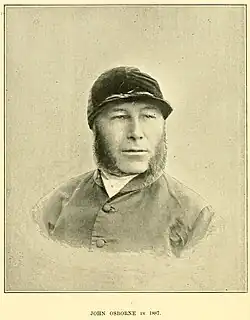 John Howe Osborne, also known as John Osborne Jr. (c. 1833 - 1922) was a multiple British classic winning jockey. He was the most successful and most popular jockey in the north of England in the second half of the 19th century. His riding career lasted 46 years.[1]