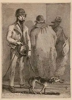 John Thomas Smith first tried to train as a sculptor with Nollekens, but left to study with John Keyse Sherwin and at the Royal Academy.[4] After three years he left to live off his drawing skills. He gave up his topographical drawing and acting ambitions to compile Antiquities of London and its Environs which was later described as his favourite work.[2] Smith became known as "Antiquity Smith".[5]