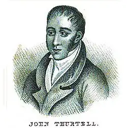 Thurtell was born In Bradwell, Suffolk, England, on 21 December 1793.[1] He was the second surviving son of Thomas Thurtell (1765–1846), who later served as Mayor of Norwich from 1828 to 1829.[2][3] His father wanted him to work in the family business, but John left to join the Royal Marines, serving in the Napoleonic Wars on HMS Bellona from 1812 to 1814.[4] He then set up a business in Norwich manufacturing bombazine, but this failed, and Thurtell moved to London, setting up a tavern in Long Acre in 1822.[2]
