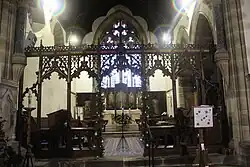 This is a Grade I listed building, founded in the 12th or 13th century.[28] Costing £4,400 (equivalent to £492,453 in 2023),[14][29] It was restored to designs by architect John Wilson Walton,[nb 8][30][31] and re-opened and consecrated by the Bishop of Ripon, on 16 October 1873, after three hundred years of neglect.[32] Walton-Wilson added a chancel, a vestry and an organ chamber.[33] The restoration cost over £4,000 (equivalent to £447,685 in 2023).[14][32] The reredos and pulpit were executed by Robert Beall.[32]