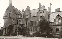 Old Shotley Hall was purchased in 1818 by Walton-Wilson's maternal uncle Thomas Wilson.[nb 2] Thomas Wilson had a new Gothic Revival Shotley Hall built to the design of Edward Robert Robson, and it was completed in 1863. Thomas Wilson, a lead mine owner, died without issue. He left the new Shotley Hall to his nephew John Wilson Walton, on condition that he assumed the additional surname of Wilson, and the Wilson family coat of arms. This change of name was gazetted on 22 October 1880.[1] Walton-Wilson's descendants continued to own Shotley Hall, finally selling it in 2016.[3][4]