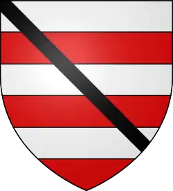 ![]() Arms of John de Soules; Barry of six argent and gules, a bendlet[1] | |