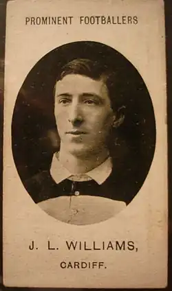 Having played association football at school, Williams switched to playing rugby with the Whitchurch Village rugby club.[5] From the start of his career, he played on the left wing.[6] In 1899, Williams was invited to play at Newport RFC under the newly appointed captain, Llewellyn Lloyd. Several players had departed, leaving gaps in the backline, and Williams was brought in, alongside Cliff Pritchard and W. Isaacs, while the effective pairing of Lloyd and Lou Phillips at halfback continued. In Williams' first season at Newport, the team scored a total of 416 points compared with the previous season's 192.[7] The following season was Newport's third best on record. However, Williams was injured during the course of the year. Nevertheless, his contributions were noted: against Moseley, despite an early error, he scored a try in the first quarter "after a grand run", and at the beginning of the second half, managed to touch down a second try, just before Yates "grassed him".[8]