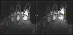 - Intra-articular (within-joint) adhesions being broken.[7]