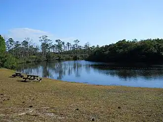 Jonathan Dickinson State Park is a Florida State Park, and historic site located in Martin County, Florida, between Hobe Sound and Tequesta. The park includes the Elsa Kimbell Environmental Education and Research Center and a variety of natural habitats: sand pine scrub, pine flatwoods, mangroves, and river swamps. The Loxahatchee River, designated a National Wild and Scenic River in 1985 (the first in Florida), runs through the park. The park is also along the Ocean to Lake Trail. The park is at 16450 S.E. Federal Highway, Hobe Sound. The park is well known for its Camp Murphy Mountain Bike Trails.