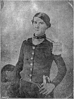 Many prominent military and politicians were born into the García family. His maternal grandfather, José Anselmo García, was a sergeant of the Spanish Army who opposed to the ruling of the Lic. José Núñez de Cáceres in Fort San José on the night of November 30, 1821.[12] His uncle, José del Carmen García, was one of the signatories of the Manifesto of January 16, 1844, and then served as lieutenant of artillery in the Battle of Azua, on 19 March 1844.[13][14] His paternal granduncle, Lic./Capt. Tomás (Toso) Ramírez Carvajal, was a lawyer and mayor of the Royal Audiencia in 1820 and Captain of the Spanish cavalry[15][16][17] with a decisive role in the Battle of Palo Hincado.[18][19] José Gabriel García was also cousin of Pedro Alejandrino Pina Garcia, co-founder of La Trinitaria along with Juan Pablo Duarte[20] as well as cousin, twice removed, of Dr. Juan Vicente Moscoso.