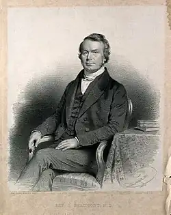 Contrary to the wishes of his maternal relatives, who wanted him to become a clergyman in the established church, he chose the ministry of the Wesleyans, as his father had done. After spending a short time in the shop of a dispensing chemist in Macclesfield, he commenced the itinerancy in 1813, and soon became widely known as an eloquent and popular preacher. He had all the qualities of a true orator. He possessed a sweet and powerful voice, a fertile imagination, and much literary cultivation. Dr. Beaumont was in great request as the preacher of sermons on special occasions, and vast crowds assembled to hear him whenever he appeared in the pulpit or on the platform. He pleaded effectively for many benevolent objects and public institutions outside the limits of his own church. He had a deep-rooted antipathy to hierarchical assumptions, and in the controversies which agitated the Methodist community he always took the liberal side. His strong sympathy with the weak and the oppressed occasionally led him into error. Beaumont was subject to the law of Methodism which requires its ministers to change their pastoral charge every three years. In two instances, however, at the urgent request of the people, he was reappointed, after an interval of years, to Edinburgh and Hull, in each of which he had previously laboured. It was during his first residence in Edinburgh that he obtained from the university the degree of doctor in medicine. He exercised his ministry for six years in Liverpool, eight years in London, and three years each in Nottingham and Bristol.