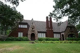 The Joseph E. England Jr. House is a historic house at 313 Skyline Drive in North Little Rock, Arkansas. It is a 1+1⁄2-story brick and stone structure, set on a wedge-shaped lot with expansive views of the Arkansas River. Built in 1928, it is a fine example of Tudor Revival architecture, and one of the Edgemont neighborhood's most elaborate pre-Depression houses. It was built for a prominent local banker and businessman who was an associated of Edgemont's developer, Justin Matthews.[2]