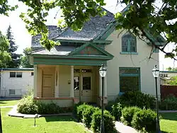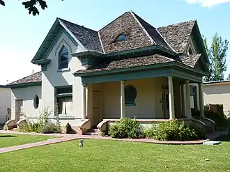 This home was built in 1906 for Joseph H. Frisby during the first year of his term as Provo City Mayor. "The House is a somewhat modest Victorian Eclectic house type that was most likely influenced by house pattern books. This house type was not used in Salt Lake City, or in many other areas of the state, but was inexplicably popular in Utah County (Historic Provo p. 8)."
