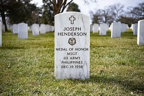 Joseph Henderson (December 1869 – December 19, 1938) was a United States Army Sergeant who received the Medal of Honor for actions during the Moro Uprising in 1909. He later obtained the rank of Master Sergeant. Sergeant Henderson was awarded his medal on 23 November 1912, for the same action as Lieutenant Archie Miller.[1]
