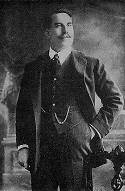 From 1893 to 1894 he toured Britain and Ireland with Sir Augustus Harris's Italian Opera Company to sing the principal tenor roles in Cavalleria rusticana, Faust, Pagliacci, Carmen, Lohengrin and Die Meistersinger, among others, his strong Heldentenor voice being particularly appropriate for the latter two roles.[5] In 1894 he first appeared at Covent Garden Theatre. For three years, O'Mara was the principal tenor at Theatre Royal, Drury Lane, also appearing in the pantomime of Jack and the Beanstalk there. He then played in the pantomime Aladdin at the Prince of Wales Theatre, Liverpool. In 1896, he created the tenor lead, Mike Murphy, in Charles Villiers Stanford's opera Shamus O'Brien, with Henry Wood conducting. After a tour of Britain and Ireland in Shamus O'Brien, the Harris company brought the opera to America in 1897, where, with his new wife, the former Miss Power, O'Mara enjoyed great personal success. Throughout the rest of his career, Mike Murphy would remain one of O'Mara's signature roles.[5]