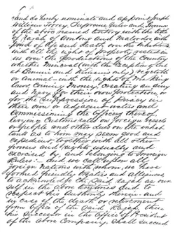 3. ^ The decisive section on page 2 of his license certificate is: and do hereby nominate and appoint Joseph William Torrey Supreme Ruler and Governor of the above named territory with the title of Rajah of Ambong and Maloodoo with power of life and death over the inhabitants with all the rights of property vested in us over the productions of the country whether mineral (with the exception of coal at Benoni and Kimanis only) vegetable or animal – with the rights of making laws, coining money, creating an army and navy for their own protection, or for the suppression of piracy in their area or adjacent waters and commissioning the officers thereof, levying custom rates on foreign vessels or people and other dues on the inhabitants as to him may seem good and expedient, together with all other forces and rights usually and exercised by, and belonging to Sovereign Rulers: - and we call upon all foreign nations with whom we have formed friendly treaties and alliances to acknowledge the said Rajah as ourself in the above territories and to respect this authority therein – and in case of the death or retirement from office of this said Rajah then his successor in the office of President of the above Company shall succeed.