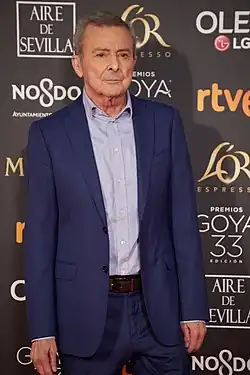 He played a señorito again in the 1988 film Jarrapellejos, as Saturnino, a rapist and murderer.[21] He portrayed another historical figure by playing the title character of the 1991 Mexican film Cabeza de Vaca.[22] He won his first Goya Award for his supporting role in The Dumbfounded King (1991),[23] playing Father Villaescusa, a 17th-century scheming friar characterised by his "arrogant, enervated, and irascible" gaze.[24] He featured in supporting roles in the 1992 film Jamón, jamón and in the 1993 film Banderas, the Tyrant, respectively portraying Manuel, the owner of the Sansón underwear factory and father of José Luis (Jordi Mollá),[25] and the licenciado Nacho Veguillas, a sycophant pandering to megalomaniac dictator Santos Banderas, portrayed by Gian Maria Volonté.[26]