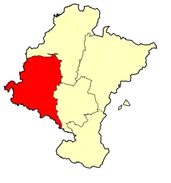 Learza[57][58] is a village belonging to the municipality of Etayo, located in the Merindad de Estella, Navarra (Spain).[59] It is in the Valdega valley, at the foot of the Sierra de Cábrega. Don Juan Vélaz de Medrano became the 1st Lord of Learza, where the 1427 Book of Fires notes the presence of 6 fires, two of which were multiple, and one was noble. The residents barely met their wheat and wine needs from their own harvest, although they also claimed to own livestock. The houses that disappeared in the last ten years were assessed at three. The inhabitants of Learza (where the monastery of Irache and the hospital of San Juan also received small incomes in wheat) contributed each year to Juan Vélaz de Medrano 10 pounds 7 sueldos, 51 half-ground wheat bushels, 289 wine barrels, and additionally, they were "obliged to perform other services to the said Juan Velaz de Medrano of tilling certain lands".[60] Later, Learza was part of the land owned by de Medrano's marquisate of Vessolla and, before that, there are indications it was a nucleus of population in times past: no less than the Bronze Age itself.[61]