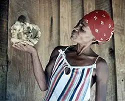 Juanita Rogers (May 12, 1934, in Tintop, Alabama - January 26, 1985) was a self-taught American folk artist.[1] She was born in Tintop, Alabama to Thomas and Sally Rogers, although she claimed she was adopted after arriving in North Montgomery by carnival train at the age of five.[2] Her mother was part Creek Indian, and died when Juanita was about twenty.[2] Juanita attended a Catholic mission school.[2] She was married to Sol Huffman, who died in 1980.[2]