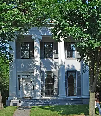 Greek Revival style facade with Ionic columns.