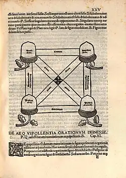 A short treatise on logic, In logicam introductorium, was also written in this period. It is known only from a reference to it in Dragišić's next work.[47] In 1471, he wrote a dialogue on future contingents, De libertate et immutabilitate Dei (or De arcanis Dei), preserved in the manuscripts Vat. lat. 1056 and Vat. lat. 9402.[52] The work has been edited and published, although erroneously ascribed to Bessarion.[53] In the dialogue, a group gathers in Rome under the leadership of Bessarion to discuss the question of future contingents.[18] The interlocutors are Bessarion; Cardinal Francesco della Rovere, the future Pope Sixtus IV; John Foxal, Dragišić's old professor at Oxford; Giovanni Gatto and Fernando de Córdoba. Chris Schabel describes the dialogue as "humanist in style and structure but scholastic in content".[54] In the original version, Bessarion led the discussion. In the illuminated dedication copy, however, because of the death of Bessarion and the election of Della Rovere to the papacy, their roles are swapped so that the future Sixtus IV appears to lead the discussion, which is moved from Bessarion's house to the palace of the Della Rovere.[52] The dialogue is certainly "imaginary" and not a record of an actual event,[55] although "it is reasonable to suppose that [Dragišić] maintained a certain verisimilitude."[56]