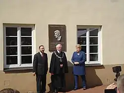 President Dalia Grybauskaitė (right) during the unveiling ceremony of the memorial plaque at Vilnius University