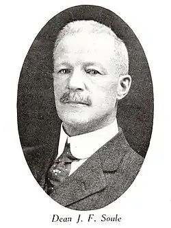 Justus Freeland Soule (April 8, 1862 – October 6, 1939) was an American football coach, professor of Latin and Greek, and university administrator. He was on the faculty of the University of Wyoming from the school's founding in 1887 until shortly before his death in 1939. He served as the school's head football coach from 1894 to 1897 and in 1899, compiling an 8–1–1 record.