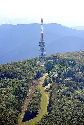 Kékestető TV Tower (Hungarian: Kékes TV-torony) is a 176-metre (577 ft) tall[1] multifunctional transmitter built of reinforced concrete on the 1,014-metre (3,327 ft) high Kékes mountain, Hungary. It is also an observation tower,[1] including a restaurant.[2]