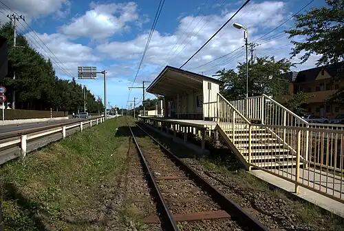 Kōgyōkōkō-mae Station had a single side platform serving bidirectional traffic. There was a small weather shelter on the platform, but no station building.