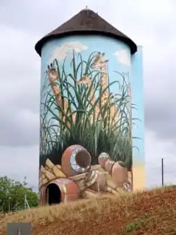Kaapmuiden (Cape Mouth) is a small farming town situated at the confluence of the Kaap and Crocodile Rivers in Mpumalanga, South Africa. The town lies just off the N4 national highway and is marked by a large abandoned silo visible from the road. The silo has since been repainted to add to tourism appeal. The farms in the region produce sugarcane, subtropical fruit and vegetables. The town began as a junction on the Netherlands-South African Railway Company (NZASM)'s Pretoria - Delagoa Bay railway line.