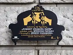 Memorial plate for Jeremi Przybora and Jerzy Wasowski and their show on Polish TV building in Warsaw.