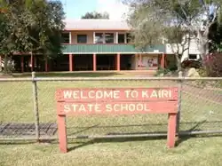 Kairi State School opened on 24 July 1911 with 12 students under head teacher Leila May Higgins. The original proposed name for the school was Innesfail State School.[15] In 1930, the school building was relocated to its current location by a bullock team. The new location was more central and near the railway crossing. After the relocation, an additional classroom was added.[16][17][18][19]