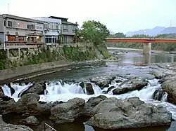 Tōryū-nada (闘竜灘) is a tourist spot in the Kako River.[5] It is a collection of rocks sitting in the middle of the river; it is said that the appearance of the stream running over the rocks resembles a dragon.[5] Originally the site was known as Sōryūtan (双龍灘), but it was renamed to Tōryū-nada after the Edo period poet Yanagawa Seigan composed a quatrain of the same name.[5]