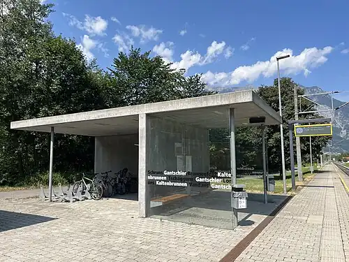 Kaltenbrunnen railway station (German: Bahnhof Kaltenbrunnen) is a railway station serving Kaltenbrunnen in the municipality of Schruns in the Bludenz district of the Austrian federal state of Vorarlberg. It is located on the Bludenz–Schruns railway and is owned and operated by the Montafonerbahn (MBS).