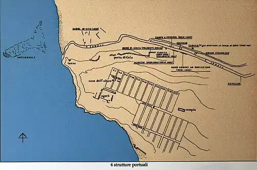 • the port-channel along the Ippari river is recognisable, made in the Greek age with adaptation of the mouth of the river, and lasted for a long time as the hub of important commercial traffic up to the Roman age.