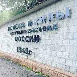 ![]() Troops and Forces of the North-East headquarters sign, Petropavlovsk-Kamchatskiy, 2007 | |