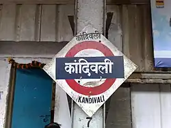 Kandivli (Pronunciation: [kaːn̪d̪iʋəliː]; formerly Khandolee, station code: KLE) is a railway station on the Western line of the Mumbai Suburban Railway network. It serves the Kandivli neighbourhood of Mumbai, India. All slow local trains temporarily halt between Kandivli and Borivali for a few seconds for signaling purposes, which commuters call an imaginary station named Thambevali.[1] In 2020, during the COVID-19 crisis, Children's Academy along with Project Mumbai undertook a beautification project for Kandivali railway station.[2]