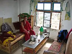 It has been extensively renovated since 1981 and now houses about 700 monks, including three tulkus - one of whom, Lamdark Rinpoche, returned from Switzerland and established a girls' school.[3][4]