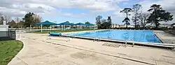 Five swimming pools are provided: one for toddlers and another for older children, two 50 metre eight lane lap pools, and a diving pool with 1 metre and 3 metre springboards. A waterslide was added to the complex in the 1980s, however it only operates during the busier summer months.