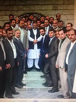 ![]() Abdul Karim Khurram with staff, while leaving office (2014). Arg, Kabul, Afghanistan | |