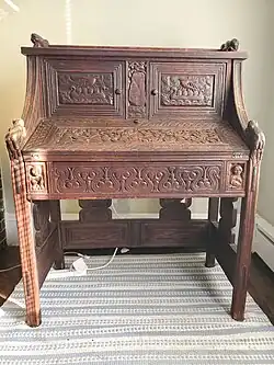 Desk carved in Norwegian style as published in a 1909 issue of The Craftsman.[58] At least two variations of this desk exist, one as shown with the crouching lions, and another with walrus figures used aboard the Aloha, now held in the Mystic Seaport Museum[59].