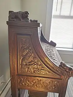 A chair from the Robert Sewell home "Fleetwood", with carved animal decorations signature to Karl von Rydingsvärd's decorative style, as featured in American Homes and Gardens.[57]