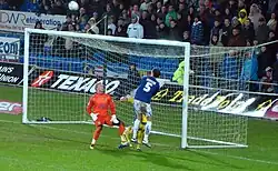 In March, TV footage[70] appeared to support Schmeichel's claim that he had scored what would have been the first goal of his career, when Leicester equalised, in injury time, against Yeovil Town. However, the match officials ruled that his header had not crossed the line and the goal was officially credited[71] to Chris Wood, who followed up to put the ball in the net.