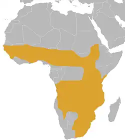 Kassina senegalensis is found over a large portion of Africa, from Senegal in the west to Ethiopia and Somalia in the east, all the way south to South Africa. Its presence is uncertain in Burundi, the Democratic Republic of the Congo, Guinea-Bissau, Mauritania, and Togo. In the northern parts of its distribution, specifically Kenya and Tanzania, the relationship between its range and that of its relative Kassina somalica is not well understood. It is found in many different habitats, including savannas (both humid and dry), montane grasslands and shrublands, wetlands, and artificial environments (such as pastures and canals). They can be found at elevations as high as 2,000 metres (1.2 mi).[1]