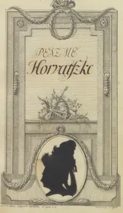 The book was dedicated to the cousin of her husband and a noted lexicographer, Adam Patačić.[4] On the title page a stylized image of various instruments is shown, namely the folk tamburica, trumpet and lyre instrument above the silhouette depiction of Katarina Patačić. [5]