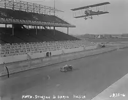 Aviatrix Katherine Stinson racing the 1916 Indy 500 champion Dario Resta