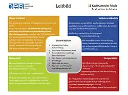 The KSTBB has been an independently operated school since November 2010. This is based on the concept of the State of Baden-Württemberg as a, “comprehensive system of internal school quality development and changes in administrative control for vocational schools in Baden-Württemberg".[12][13] In this context, we developed a quality model that represents the characteristics, strengths and target areas of the school.[14][15][16] Showcasing this are the following features: